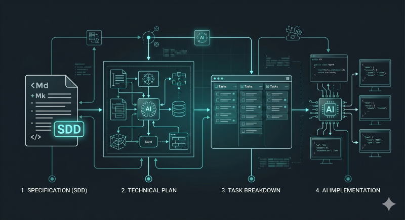 To successfully implement Spec-Driven Development, you need to establish a strict, linear workflow. SDD is not about generating code incrementally; it is about building an architectural foundation and then executing that construction flawlessly.